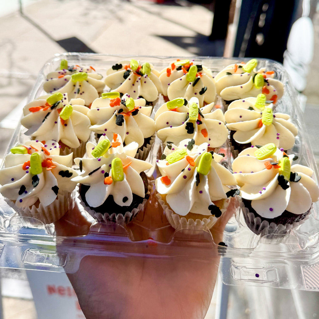 Mini Halloween Cupcakes with Vanilla Buttercream frosting and witch fingers and halloween sprinkles!